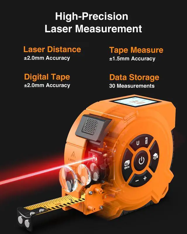 Efficient Measurements: This measurement tape offerss one-touch operation to speed up your workflow, while automatic data recording eliminates manual errors for more reliable results. The self-lockirig tape and single-person design make it easy to measure indepeendently, saving time and reducing reliance on others. With the ability to store up to 30 readings, referencing past measurements is quick and hassle-free