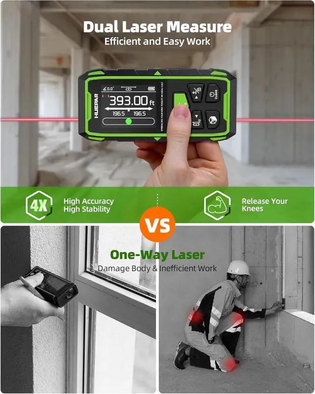 Auto-Rotating LCD & Screen LockThe smart LCD screen auto-rotates, ensuring clear visibility from any angle. The screen lock feature prevents accidental changes, making it an ideal replacement for laser tape measures. Perfect for construction, electrical work, and home improvement projects