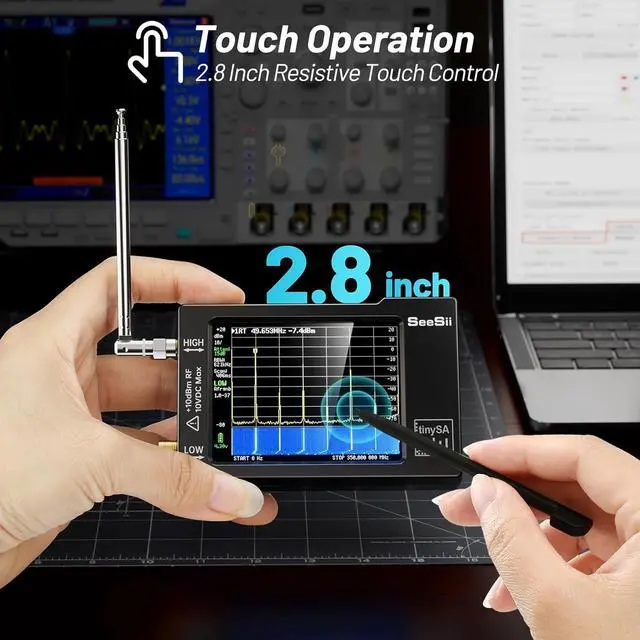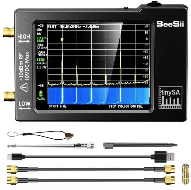 Package List: 1x Tiny Spectrum Analyzer; 2 x 20cm RF Cable; 1 x USB Cable; 1 x SMA Female to Female Connector; 1x Touchscreen Pen; 1 x SMA Telescopic Antenna. It's very useful as an antenna analyzer for your ham station, easy to set without fancy calibration. The firmware of the tinySA can be updated by the user. New versions of the firmware needed please contact seller for download link