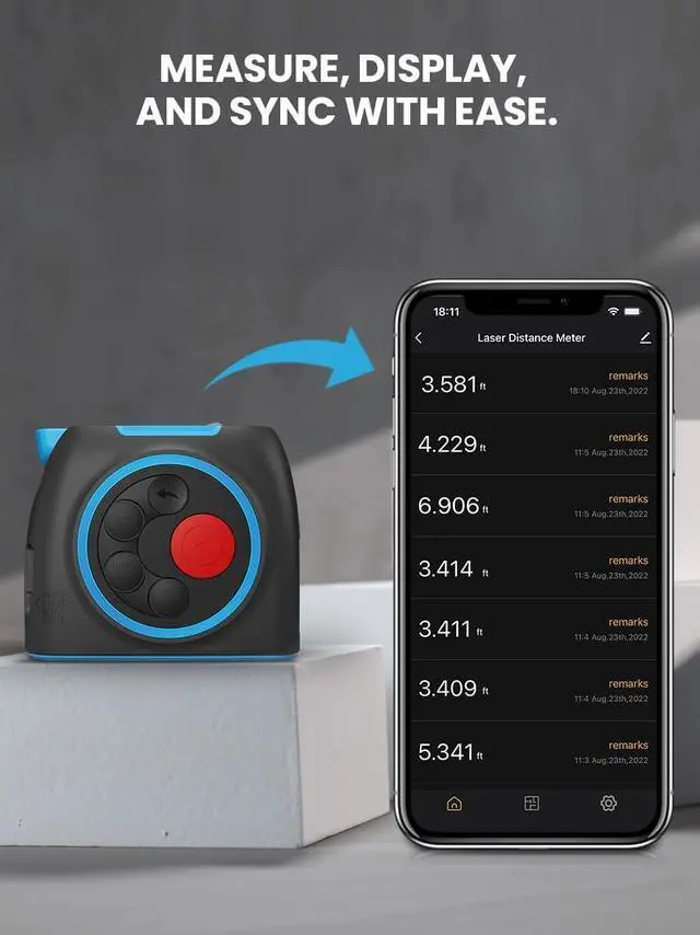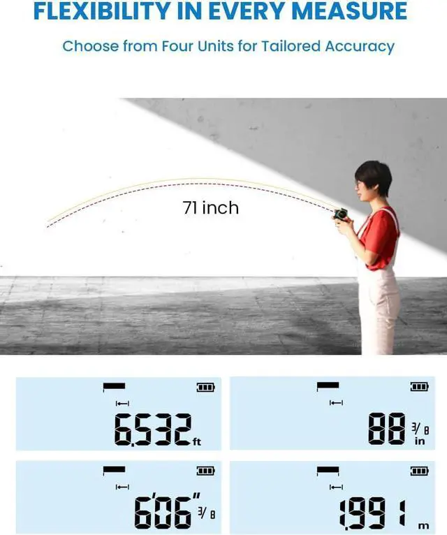 Smarter Calculations & Data Memory - Instantly calculate area and volume for material estimation, and use the built-in Pythagorean mode to measure hard-to-reach spaces safely. The 20-group memory stores your past measurements, preventing data loss.