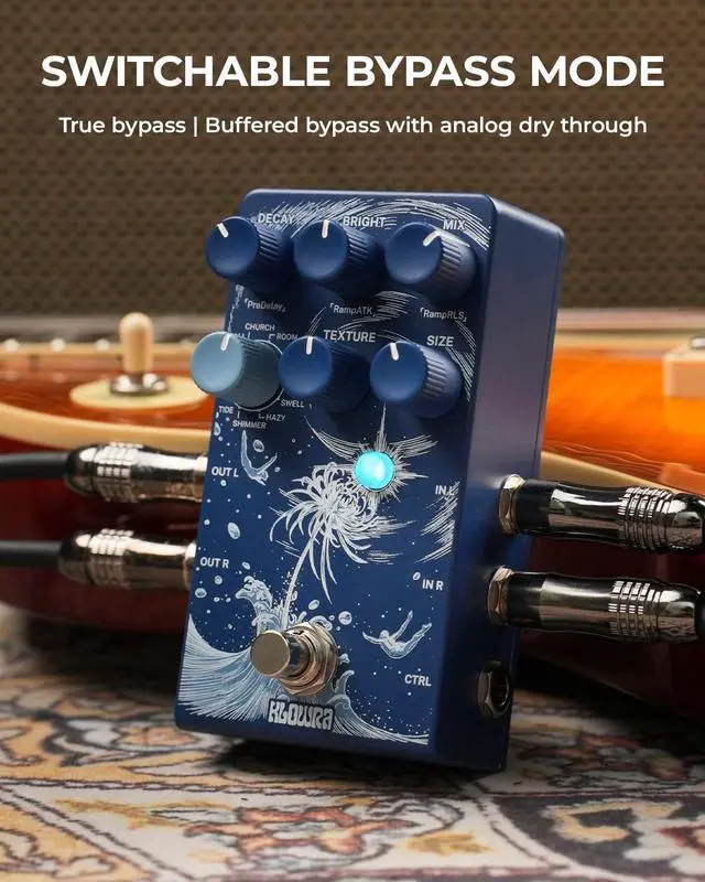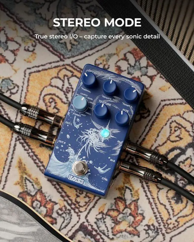 Added LED Button&EXP Support - Limbo Reverb Pedal features True Bypass/Buffered Bypass, stereo I/O, and external TS/TRS footswitch/expression pedal control, with Analog Dry-Through with MIX for pristine tone and newly added LED button for simplified, intuitive operation