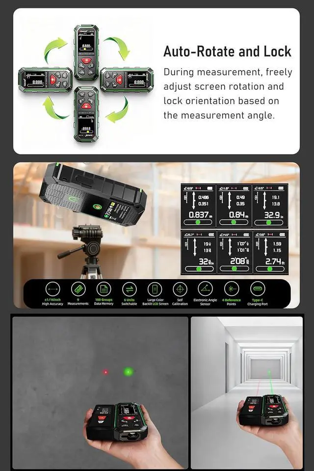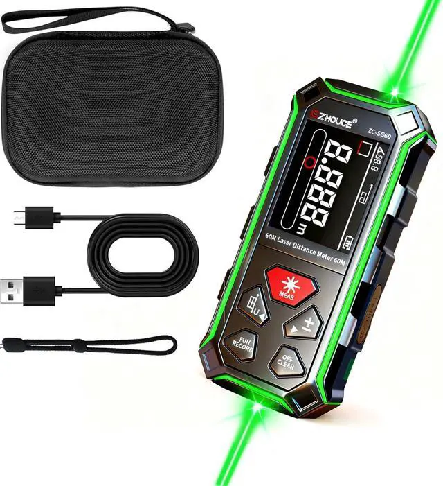 2-Year Warranty & Complete Accessory KitZHOUCE ZC-SG 60: 1 x Dual-Direction Green Laser Measuring Tool, Type-C Charging Cable, Wrist Strap, Carrying Case, and User Manual. Stores up to 100 sets of data for retrieval. The perfect holiday gift for friends and family. 24-hour online response.