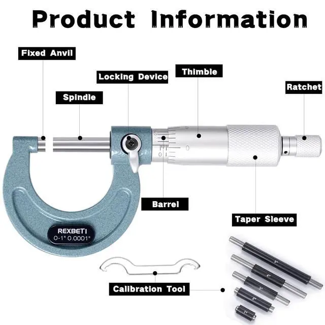 Featuring a baked enamel coating for frame protection and durability, with chrome-plated spindle and sleeve for rust prevention The smooth and flat micrometer spindle ensures the measurement accuracy