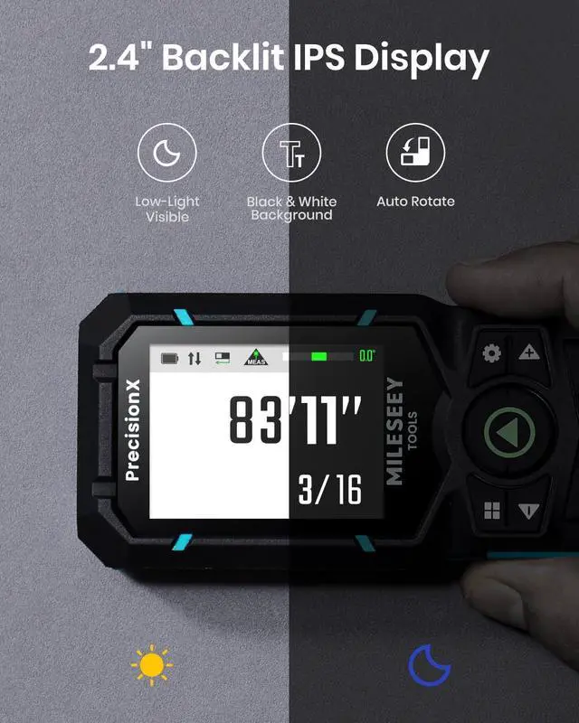 2.4" IPS Backlit Display - Bright, high-resolution screen with switchable black/white background adapts to lighting conditions for crystal-clear readings in both sunlight and low light.