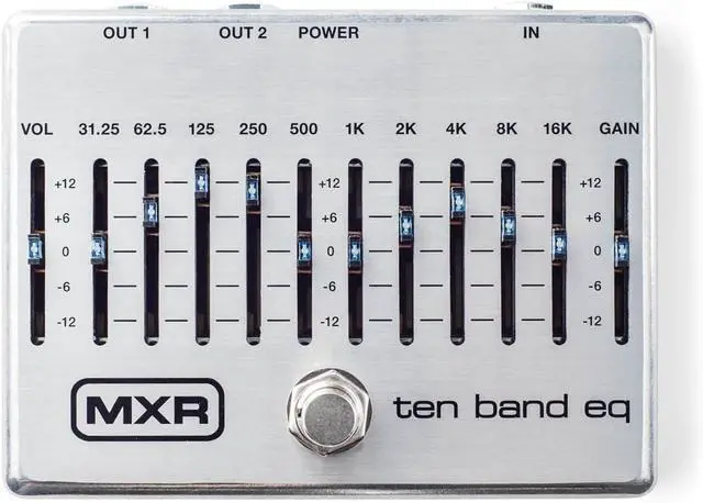 The MXR Ten Band EQ has been upgraded with noise-reduction circuitry, true bypass switching, a lightweight aluminum housing, brighter LEDs for increased visibility, and a second output so you can run two separate signal chains. With ten carefully chosen frequencies and both input and output level controls, the Ten Band EQ will let you tune your bass or guitar rig to any room in secondscreate earthshaking low-end; restore punch, level, and treble response to a crowded pedalboard; warm up an amplified acoustic; and much, much more. For ultimate tone-sculpting ability in a bullet-proof enclosure, put the Ten Band EQ on your pedalboard.