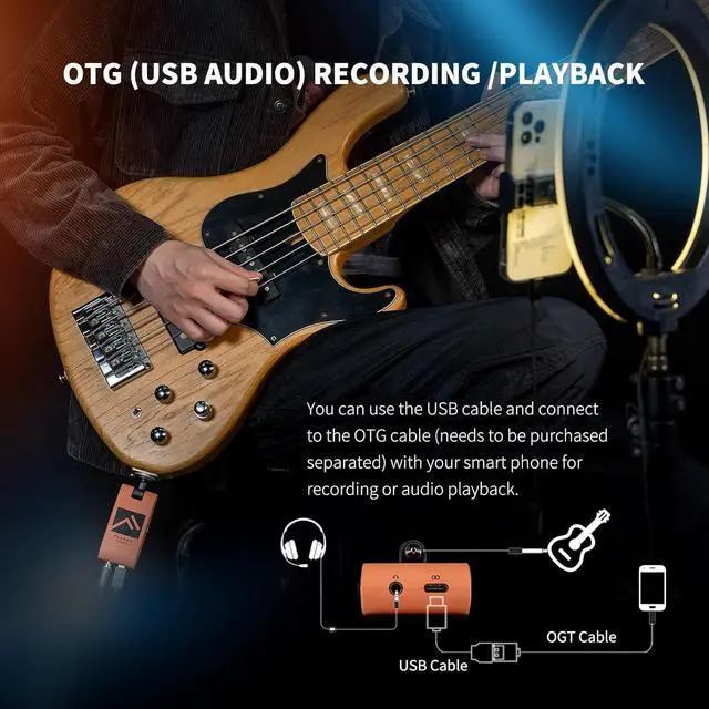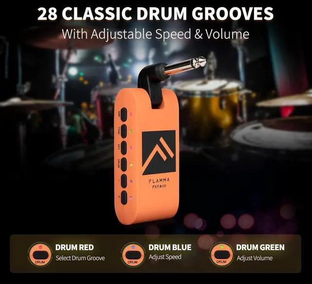 Bass Headphone Amp Portable Modeling Headphone Amplifier with 28 Drum Grooves 7 Amp Models Built-in Effects 5 Tone Color Support Bluetooth USB Audio Recording&Playback OTG Function Rechargeable