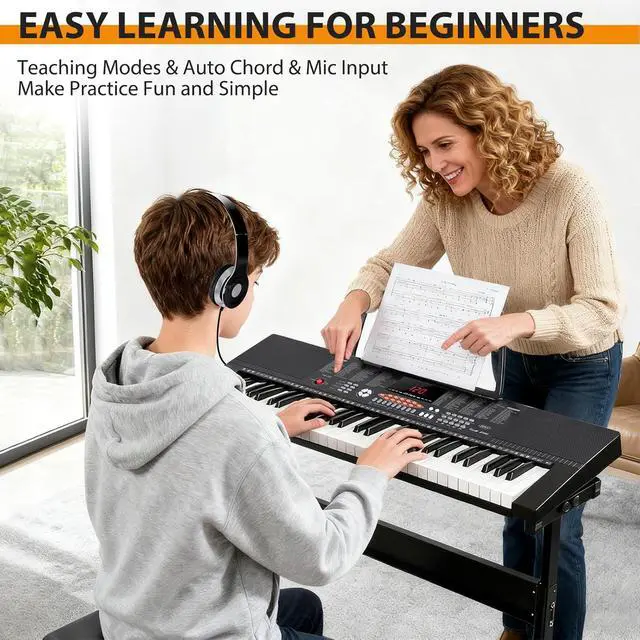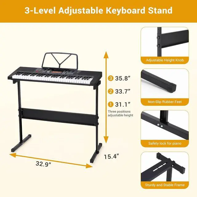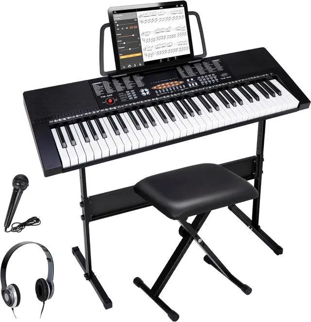 A Perfect Gift-- With an keyboard stand, music stand, padded stool, microphone and more, and with the sturdy cardboard package, very convenient for storage and consolidation, great birthday/ Christmas gift/ festival gift! And it is also an ideal gift for beginners and all music lovers