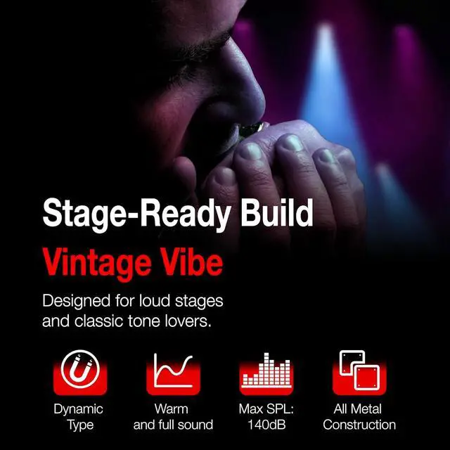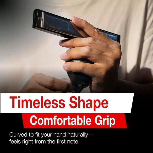 AMBIDEXTROUS GRIPDesigned with smooth curves to fit comfortably in either hand, this mic feels natural while cupping and playing. Perfect for long jam sessions or energetic stage work.
