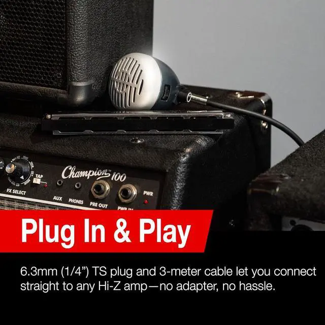 PLUG RIGHT INTO YOUR AMP Comes with a permanent 6-meter (20 ft) dual-core shielded cable and 6.3 mm TS output plug with lightweighted 650g micready for stage use with zero fuss. Just plug it in and youre set.