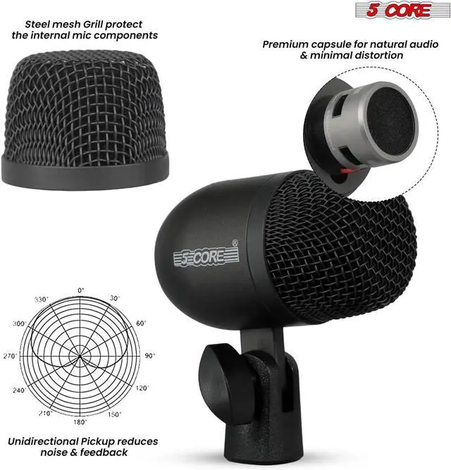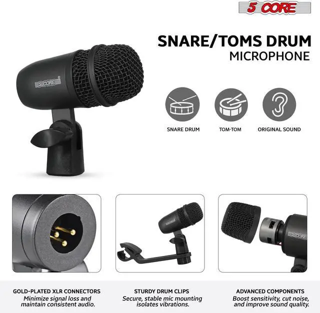 Easy Installation and Secure Mounts Designed for quick setup, each mic features standard XLR connectors and universal drum mounts that fit securely on most rims and stands. The built-in locking stand adapter keeps your drum mics stable, even during energetic performances, making setup fast and worry-free.