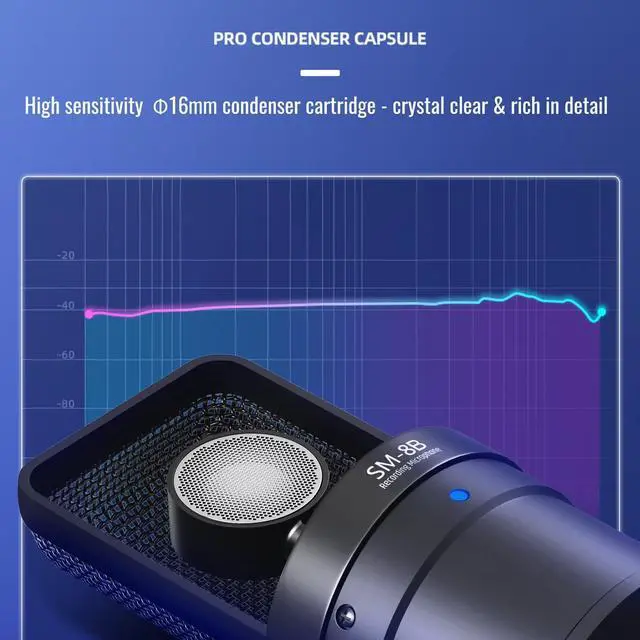 CRYSTAL CLEAR SOUND - The new SM-8B adopts a classic cardioid pattern, precisely picking up sounds from the front and reducing sounds from the sides and rear. With wide audio response from 20Hz to 20KHz, and a sensitivity of -36dB±3dBV, recording fine, clear sound.