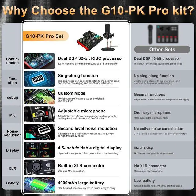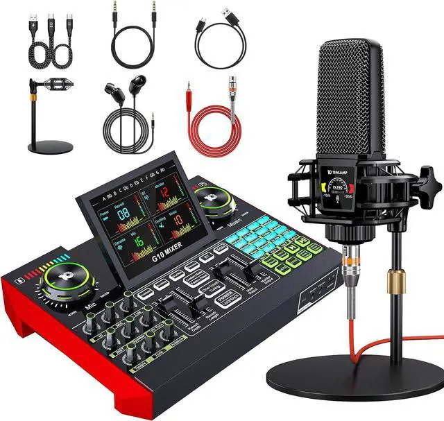 Plug and PlayUniversal Compatibility: G10-PKPRO podcast kit studio offers an all-in-one onboard recording/processing solution for streamer, online podcaster and gamers. Works well on PC, Smartphone, Tablet, Windows, iOS, Android and more, plug and play, no need drivers. As well as supporting USB digital connection 3.5 mm analog transmissions, BT wireless input Song accompaniment