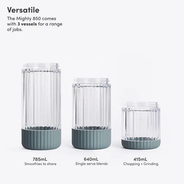 WHAT'S INCLUDED: 850W Blender Base, Beast Mighty Blade, Blade Cleaning Brush, 3 Blending Vessels (26oz, 22oz, 14oz), 2 Storage Lids, Drinking Lid, Carry Cap, Straw Cap, 2 Straws, Straw Cleaning Brush