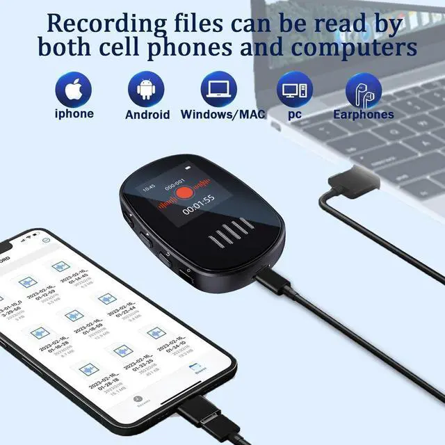 Multiple ways to read recordings: Built-in speaker, directly play recordings/music/audio files, connect to cell phone/computer/headphones to listen to recordings, and cell phone/computer to backup each other's files.
