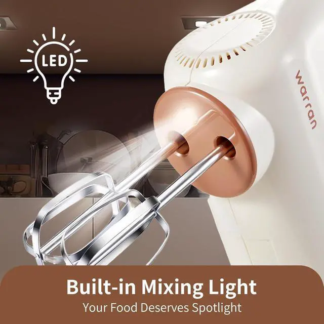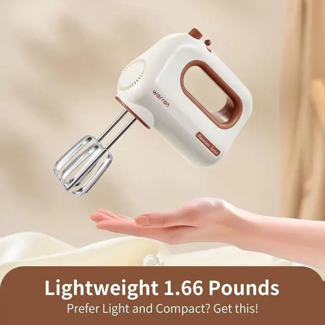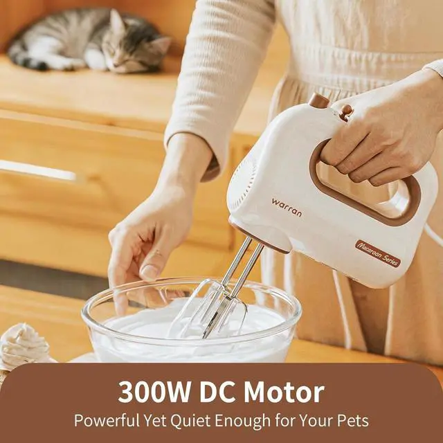 warran 300W Compact Lightweight Electric Hand Mixer, with Powerful Quiet DC Motor for Baking, Cake, Brownies, Cookie Dough, Ideal for Home Kitchen (White)