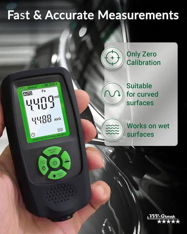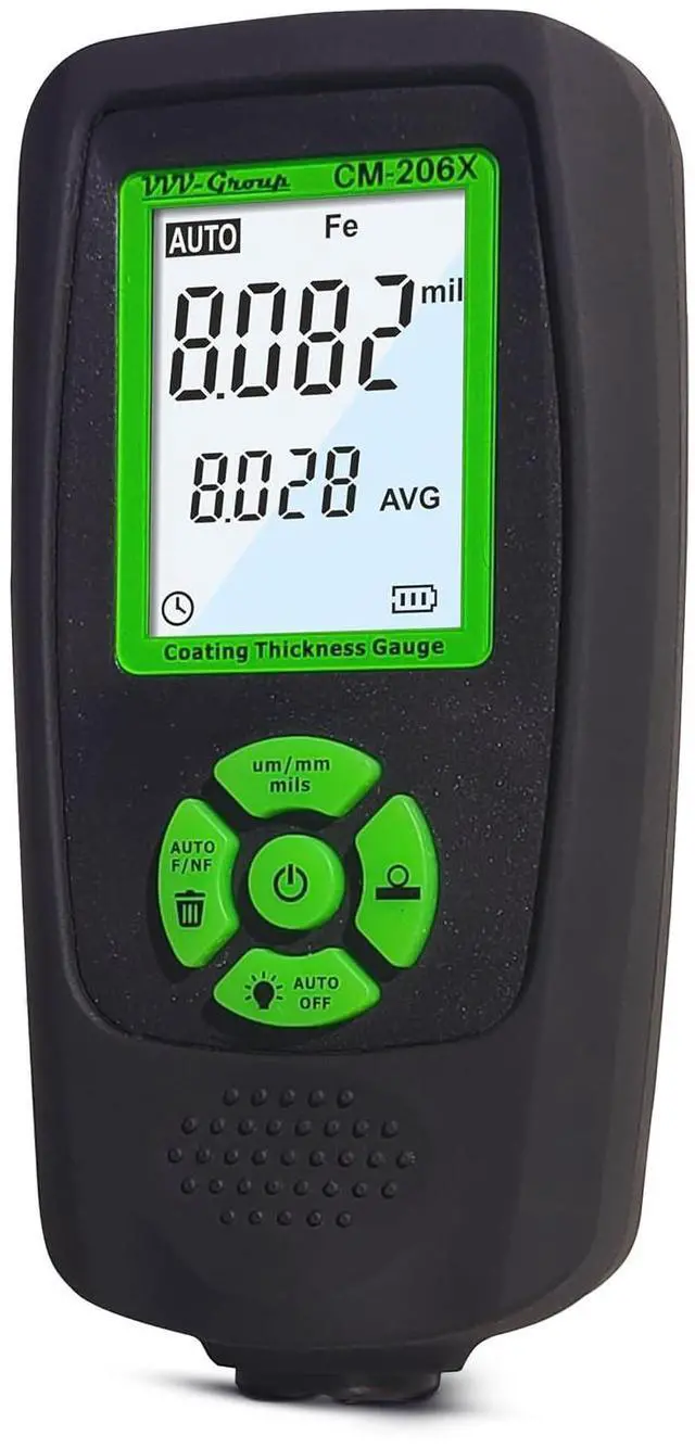 ADVANCED STATISTICS AND GALVANIZING INDICATOR The CM-206X paint thickness gauge provides detailed statistics including mean, minimum, maximum, and number of readings. The 2025 model also features a galvanizing indicator, displaying the Zn symbol when detecting galvanized iron, making this paint depth meter an advanced auto expertise tool.