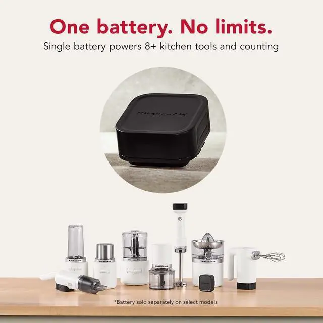 The power to make. The power to move. Create anywhere using the KitchenAid Go Cordless Hand Mixer. Powered by a rechargeable 12v MAX removable battery, the new cordless hand mixer delivers 60 minutes of continuous run time* and performance, so you can cook wherever, whatever, and however you choose. *Maximum initial battery voltage (measured without a workload) is 12 volts. Nominal voltage is 10.8. Actual run time will vary based on recipe and/or attachments used. Battery life impacted by factors such as battery age and use.