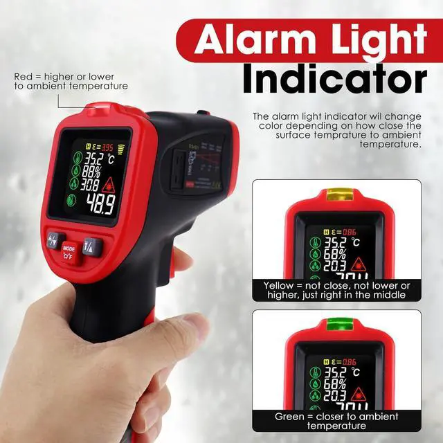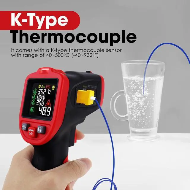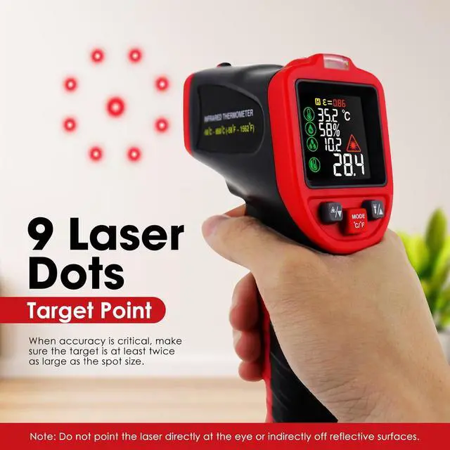 Wide ApplicationPerfect for industrial, kitchen, automotive, and home use; safely measures hot, hazardous, or hard-to-reach objects without contact, making it ideal for HVAC, cooking, engine diagnostics, and more.