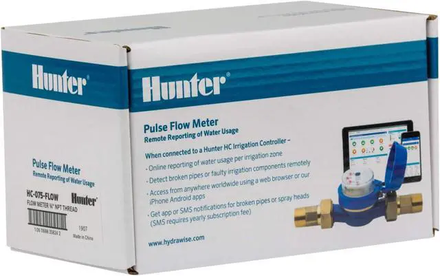 Precision, reliability, and protectionbuilt into every drop. The Hunter HC100FLOW 1" Flow Meter is the smart irrigation upgrade that turns water usage into actionable insight. Whether you're a DIY homeowner optimizing a lawn zone or a commercial landscaper managing multiple stations, this flow sensor brings visibility and control to any Hydrawise-enabled system. Designed to work seamlessly with Hunter HC, Pro-HC, HPC, and HCC controllers, the HC100FLOW connects directly to your smart irrigation network. It continuously monitors flow in real time, tracking total system usage and detecting high- or low-flow anomalies like broken pipes, stuck valves, or cracked emitters. If something goes wrong, youll get instant alertsso you can take action before water waste turns into landscape damage or an inflated utility bill. Built to handle the elements, this 1" brass-body sensor is engineered for in-ground installation with corrosion resistance, dependable signal output, and standard 1" NPT threading for simple integration. No guesswork. No rewiring. Just trusted data from a field-proven sensor designed for precision, durability, and efficiency. From water conservation to preventative maintenance, the HC100FLOW is more than a flow meterit's a smarter way to manage your irrigation.