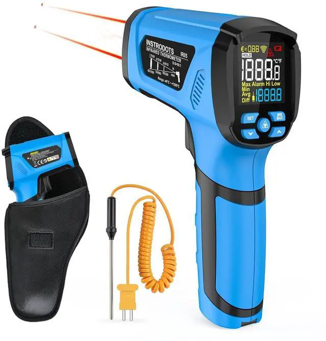MULTI-FUNCTIONAL IR THERMOMETER GUN - Features with MIN/MAX/AVG/DIF modes, users can set high/low/difference of temp alarm, and the thermometer will alert for quick anomaly detection and troubleshooting when the temp is above/below the set limit. The emissivity is adjustable from 0.1 - 1.0, and supports accurate temperature measurement for different materials. The color LCD backlight display can better distinguish the data at a glance and finish the work in the dark.