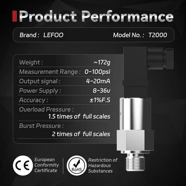 The heart of T2000 pressure transmitter is a ceramic pressure sensorthat is temperature compensated and laser trimmed for accurate span andoffset calibration. The typical advantage is the compact size, whichmake it convenient to be installed in small room. Some typicalapplications for these pressure sensor are: Process control andautomation, compressors and pumps, engine controls, off road vehicles toname few.