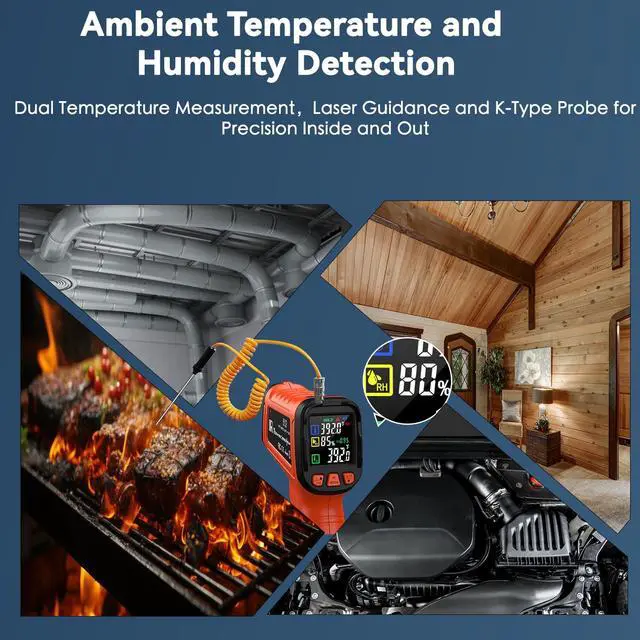 Wide Range of Applications**: Ideal for high-temperature industrial environments such as pizza ovens, furnaces, kilns, welding, and forging. The included K-type thermocouple extends its use for food testing, wood and wall monitoring, and HVAC systems. The humidity monitoring feature is also perfect for equipment maintenance and material monitoring.