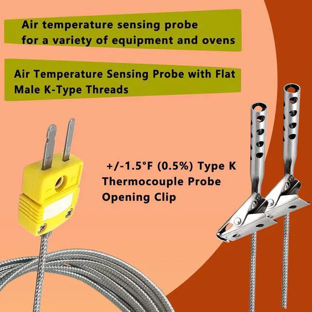 2-Pack TL3163K K-Type Thermocouple Air Probes K-Type Thermocouple Temperature Probes -40°F to 875°F Stainless Steel Open-End Clamp for Air Temperature Measurement