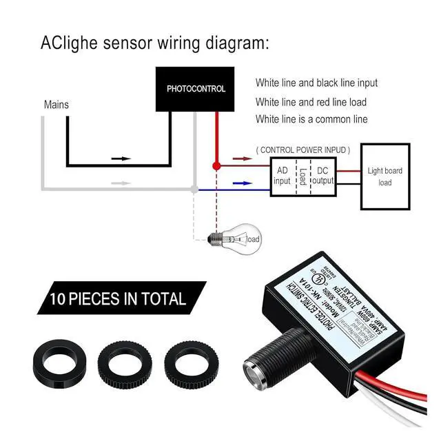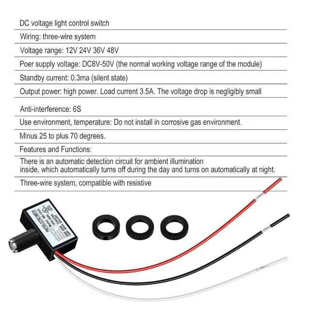 Easy to use: light control sensor button switch easy to install, it can work with most types of light lamps, such as LED,
