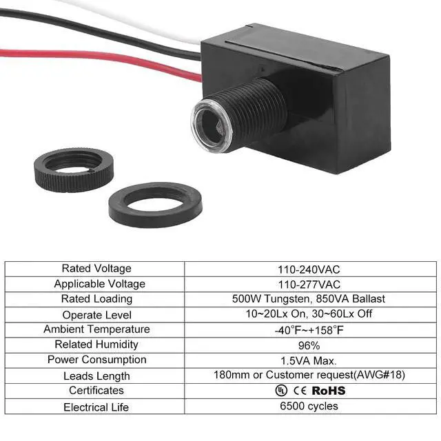 UL Certified -- Our photocell light sensor switch has been listed by UL, CE and RoHS, make sure your safety. We could provide mass customization service for whatever models you want. If you have any question, please feel free to contact us.