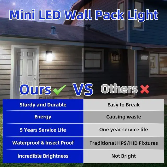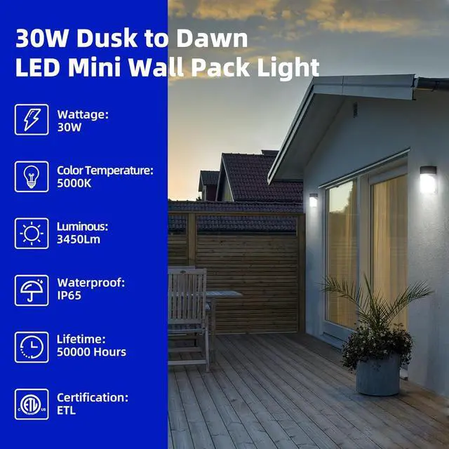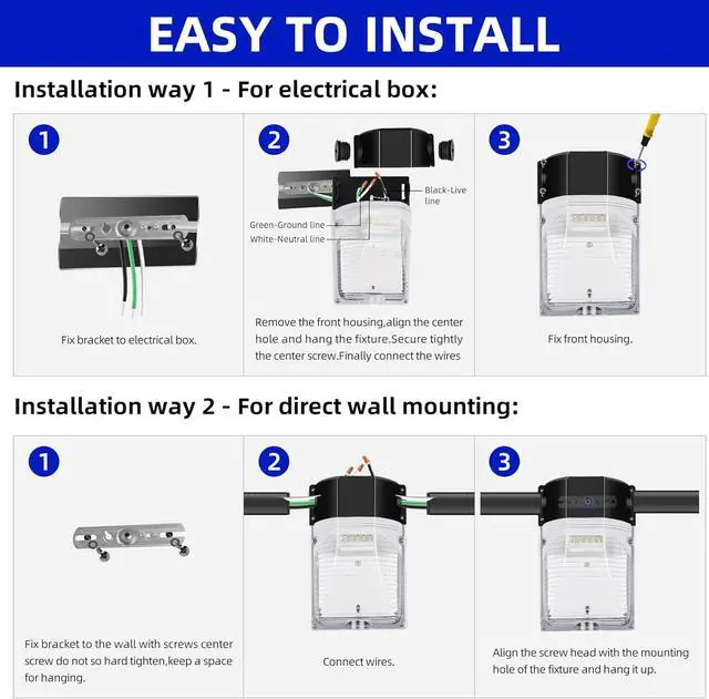 % This wall light adopts the latest high-performance LED chips, which can provide 3450lm under 5000K daylight with only 30W LED, which can instantly save up to 75% on your electricity bill. It is a perfect replacement for 250W metal halide bulbs (or 150W HPS bulbs). The maintenance-free energy-saving LED has a service life of more than 50, 000 hours, and there is no need to replace the bulb.