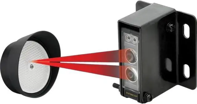 E-936-S45RRGQ Retro Reflective Photoelectric Beam Sensor, 45ft (14m) Sensing Range, Weatherproof (IP66) Construction for Indoor/Outdoor use, Pre-Wired 6ft (1.8m) Cord