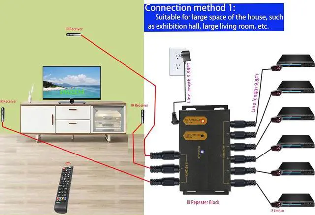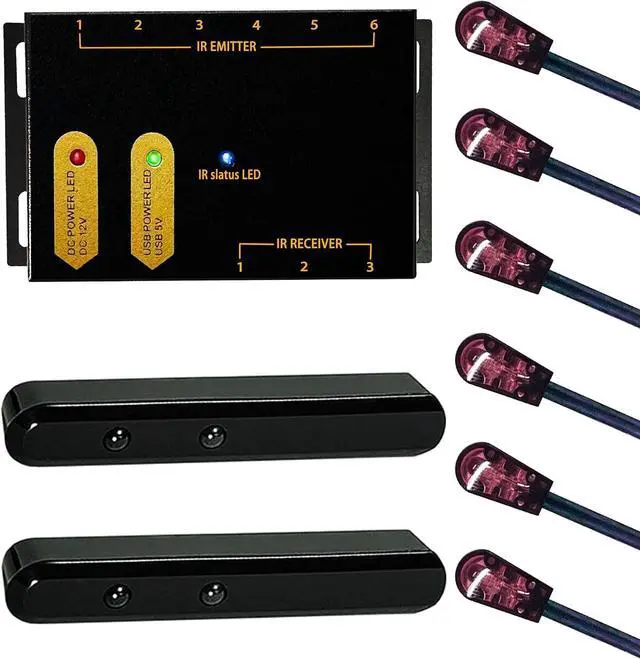 Thanks for buying our 3x6 IR Repeater System, with it you extend the IR (infrared) signals of a remote control. This IR Repeater system makes it possible to control multiple devices while these are in a closed cupboard or in a remote location out of sight. Your components may now be mounted in your entertainment center system cabinet, closet or another room! An ideal solution for those who want to hide conceal their A/V components equipment such as AV receiver, DVD Blu-ray player, and satellite receiver set top box STB etc.