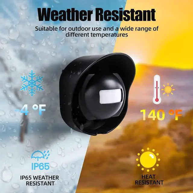 Wide area coverageThe wireless weather resistant motion sensor can be used to monitor&protect your outdoor/indoor property. It works through thick walls, trees and metal siding buildings. It will not interfere with other equipment in your home or those of your neighbors, ensures that you will never miss any visitors, even if you are several rooms away.