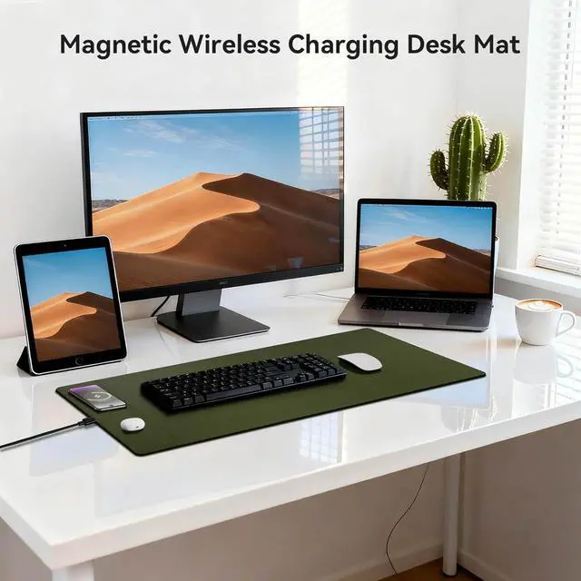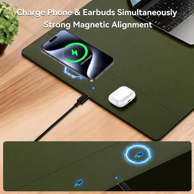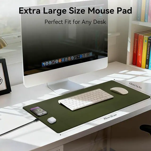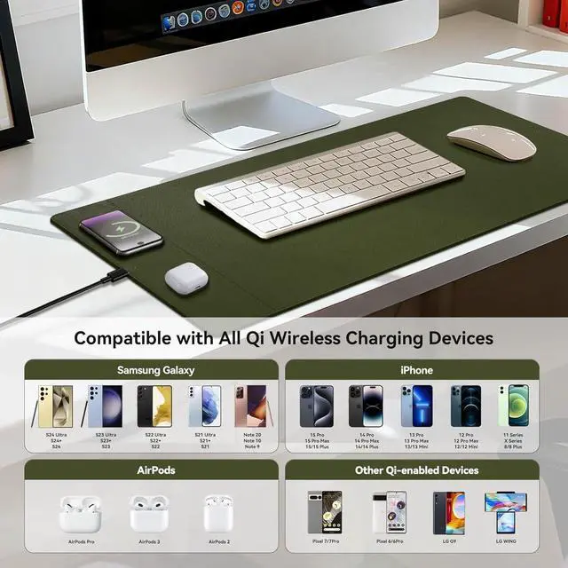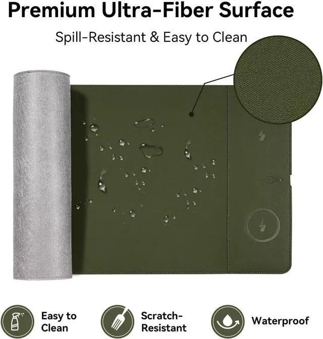Super Smooth Surface Our wireless charging desk pad is crafted with premium microfiber leather fabric, offering a surface with an unparalleled smooth touch, enhancing the precision of your mouse control and elevating your user experience