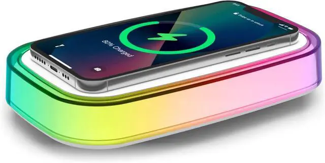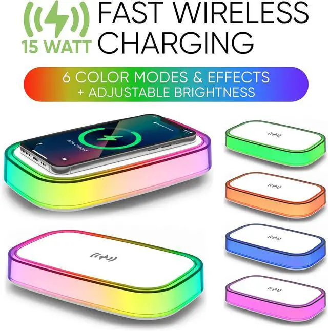 The Wireless Charging Pad with Color Changing Light provides a convenient way to charge supported devices while adding a decorative lighting element to a room. Its slim and compact design allows it to fit well on nightstands, desks and other flat surfaces where space is limited. The charging surface is designed for wireless charging up to 15 watts when used with an appropriate power adapter and cable setup. Devices can be placed on top of the pad to begin charging without the need for direct connection to a charging cable. A built in RGB color light offers six lighting modes and effects that can be selected to create different visual settings. The brightness level can be adjusted to suit a variety of environments, making the light suitable for use in bedrooms, offices or shared areas where adjustable lighting is preferred. The light operates independently from the charging function, allowing the user to use one or both features as needed. The housing is made from durable plac, and its low profile shape is suited for placement in areas where a larger charger may not fit comfortably. The unit is powered through a USB C connection and includes a USB cable for convenience.