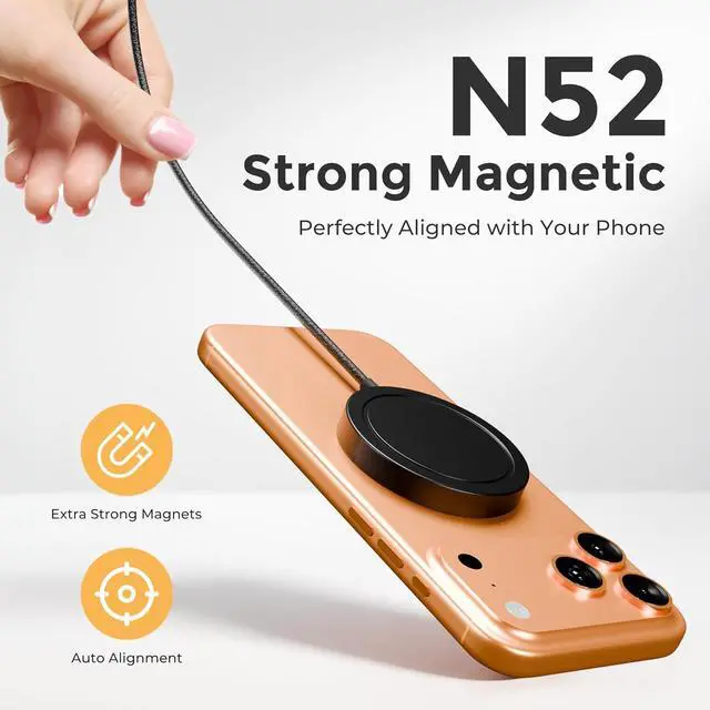 Auto-Align Magnetic Precision for iPhone: Sg integrated magnets automatically align iPhone 17 to 12 Series for optimal placement and efficient power transfer. For Android devices, magnetic alignment depends on built-in magnets or a compatible magnetic case.