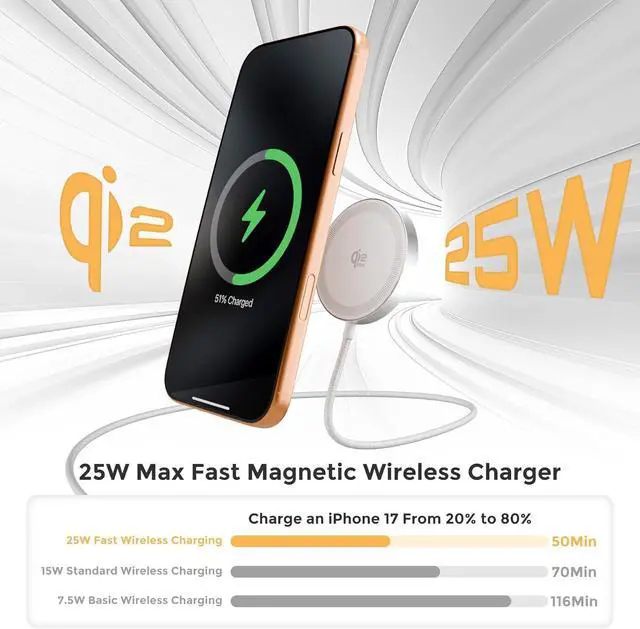 Auto-Align Magnetic Precision for iPhone: Sg integrated magnets automatically align iPhone 17 to 12 Series for optimal placement and efficient power transfer. For Android devices, magnetic alignment depends on built-in magnets or a compatible magnetic case.