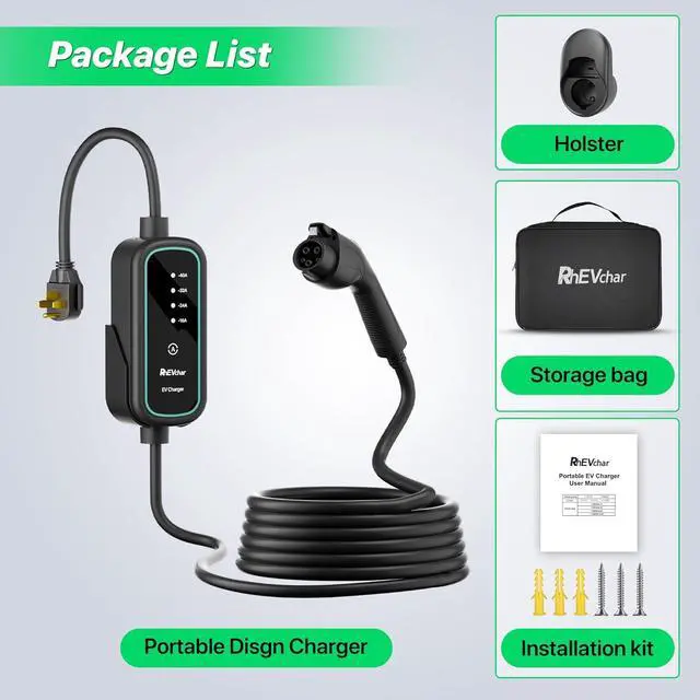 Customerl-Friendly Design: Includes a dedicated wall-mounted holster and a portable storage bagperfect for travel, emergencies, and daily use. Extra-long, heavy-duty 25FT cable offers the flexibility to charge from garage, driveway, or cur