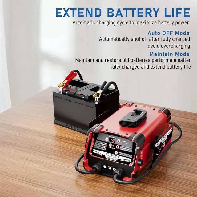 Auto Shutoff/Maintenance - The battery charger offers two charging modes. The Auto Shutoff mode stops charging after the battery is fully charged to prevent overcharging. The Maintenance mode uses a pulse current to restore and extend the life of old, depleted, stratified and sulfated batteries after a full charge