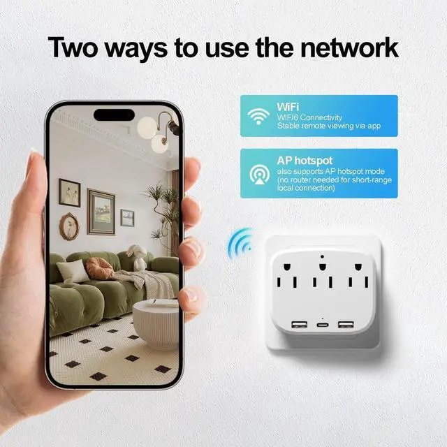 Multi-functional outlet with Type A and Type C ports to charge multiple devices(maximum current 10A, not exceeding 2000W) while monitoring your pets. Also you can share it with your family, the camera support share 3~5 device.