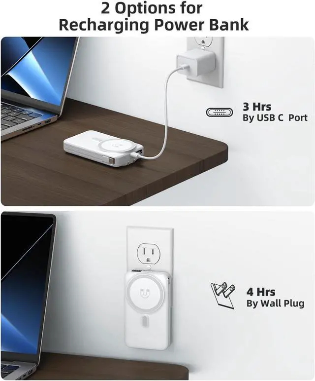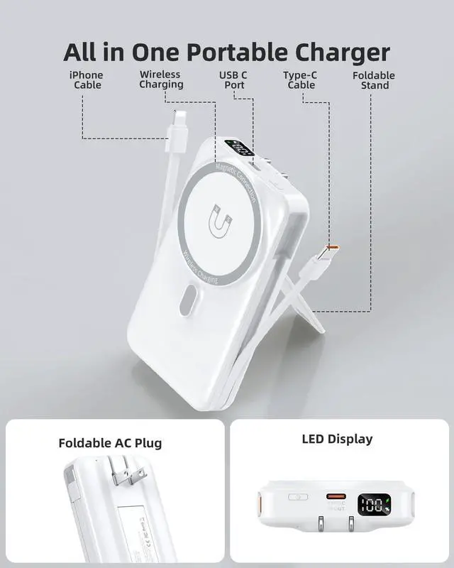 Foldable Stand for Hands-Free Use: Equipped with a sturdy foldable stand, this portable wireless charger for MagSafe iPhone easily transforms your device into a mini workstation or entertainment screen while charging. Use it vertically for FaceTime or horizontally for Netflix. More than just a power bank, its a practical portable charger that adds convenience to work, travel, or daily use
