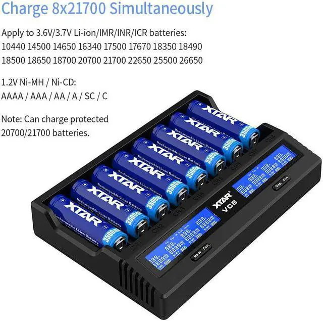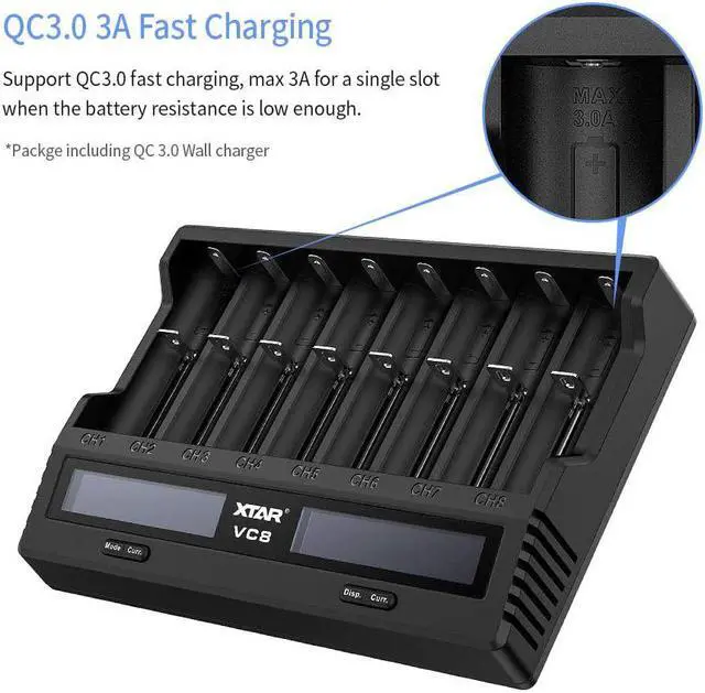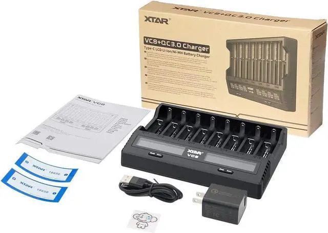 Package list: VC8 Charger (not included batteries), QC 3.0 wall charger (Black ), USB C Cable