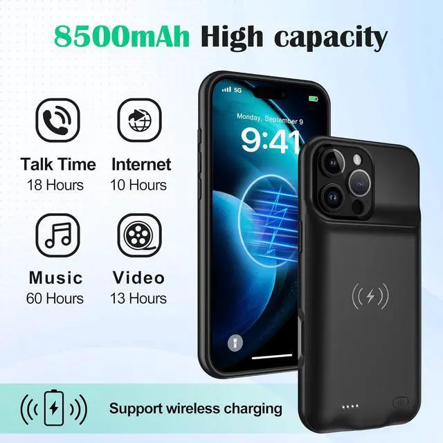 Battery Case Charger Made for iPhone 16Pro, 8500mAh Extended Smart Qi Wireless Charging