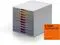 Stylish drawer box with ten colorful drawers made of premium-quality plastics. Each drawer is a different color making it easy to organize your documents. The draws open smoothly and includes drawer stops. Includes transparent labeling windows and EDP-printable and easy to exchange label inserts. Drawer sets can be stackable and include skid proof plastic feet. Suitable for holding Letter Size ( 8.5" x 11"), C4, folio and letter size formats. Drawer unit includes 10 color coded drawers as follows: 2x yellow, 2x orange, 2x red, 2x light purple, 2x dark purple.