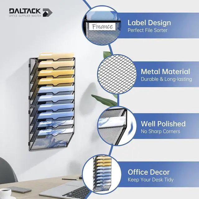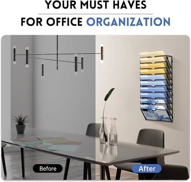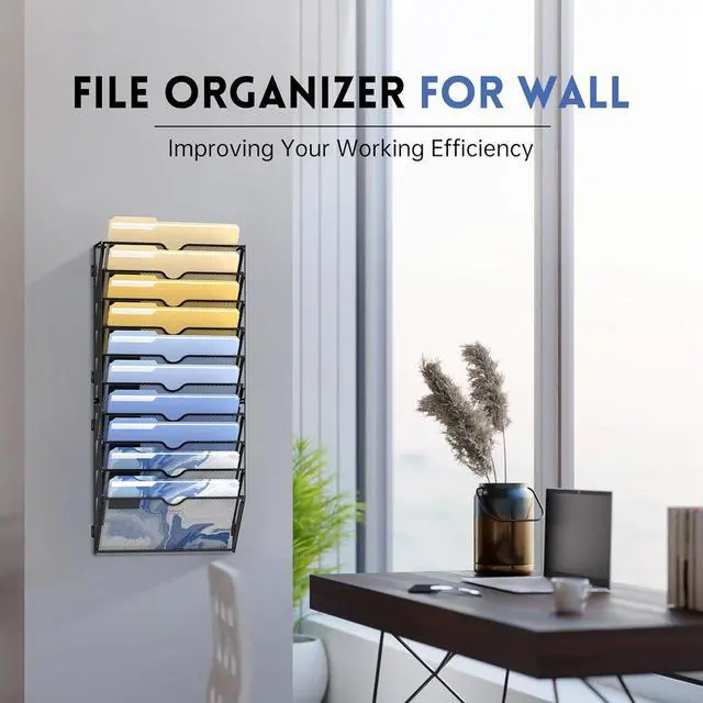 [Easy Assembly] We take it fully into account that customers need easy assembly of file organizer wall mount. So this wall file holder is quite easy to install. Screwdriver bits are included. Manual installation and video of this wall organizer for office are also provided. It will only take several minutes to put this file organizer into use.