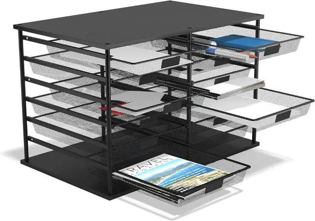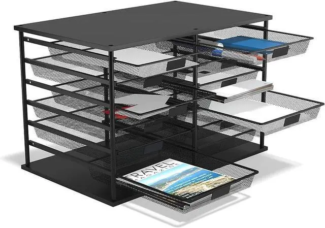 Customize your organization system to meet your needs. This versatile storage solution accommodates notebooks, paper pads, files, forms, documents and office supplies. A sleek design aesthetic featuring a tightly woven metal-mesh body with reinforced ribbing and a flat-square frame with rounded edges delivers reliable performance with a contemporary, professional flair.