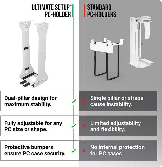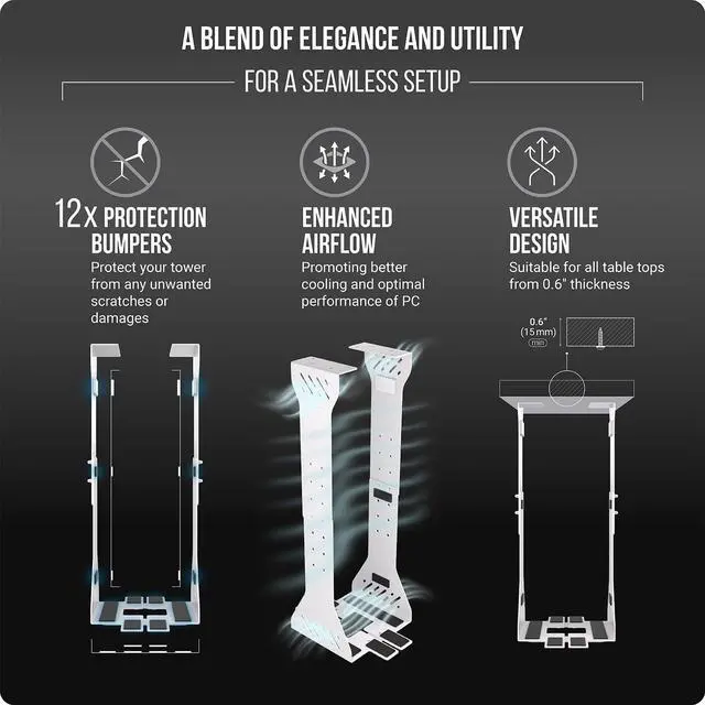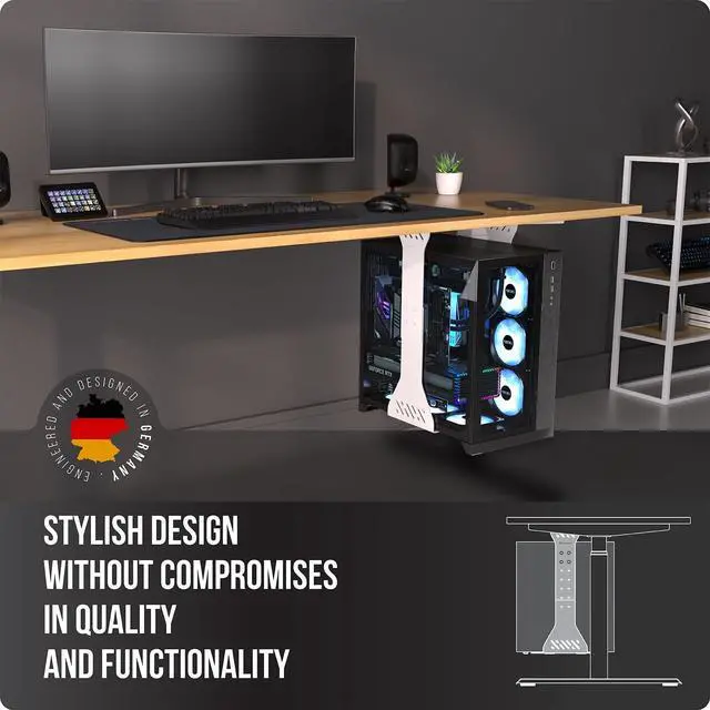 Aesthetics& Ventilation: A good cooling system is particularly important for high-performance computers. Numerous ventilation slots in the CPU holder under desk mount not only look aesthetically pleasing, but also ensure ideal ventilation