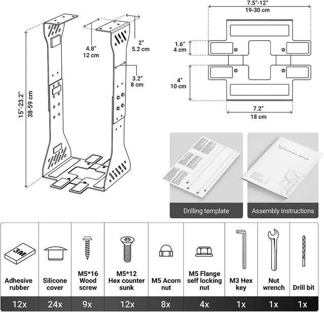 Easily attached: The computer holder for desks is designed to fit your PC case seamlessly. With the included drilling template, it can be securely mounted under your desk in no time