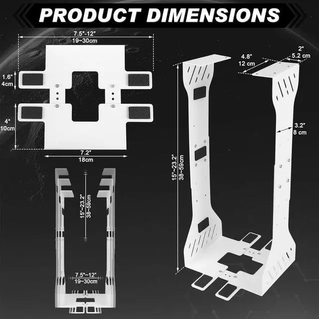 Size: the dimensions of the under desk pc holder are 11.02 x 12.09 x 23.37 inches.