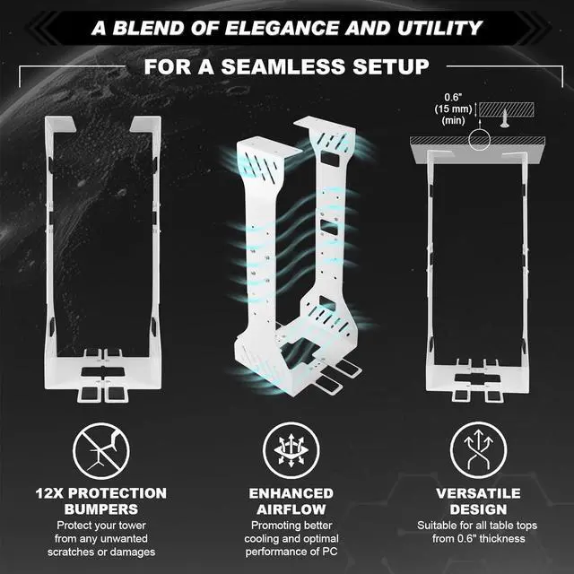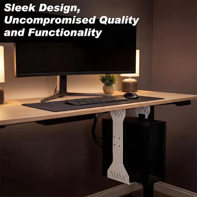 Aesthetic Design Optimal Ventilation: designed with both style and functionality in mind, the under desk PC mount features multiple ventilation slots; These not only enhance the visual appeal but also provide excellent airflow, ensuring your computer stays cool and operates efficiently